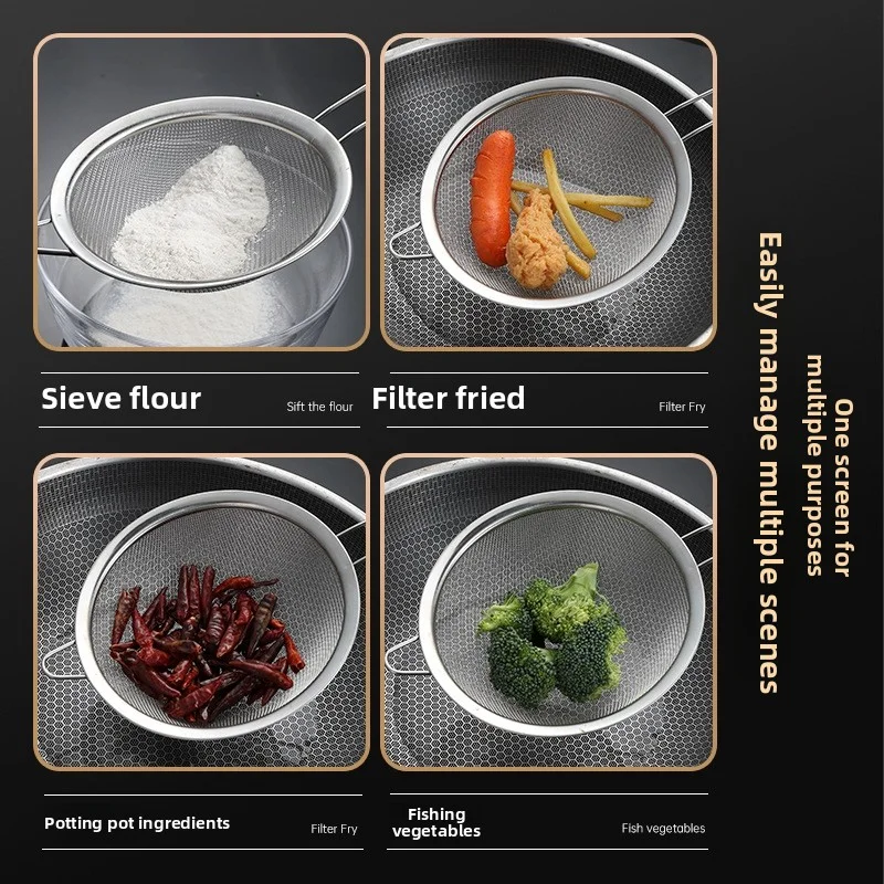 Be the first to review “Stainless Steel Sieve Fine Mesh Filter Slotted Spoon Kitchen Accessories For Cooking Baking Oil Flour Strainer Sifter”